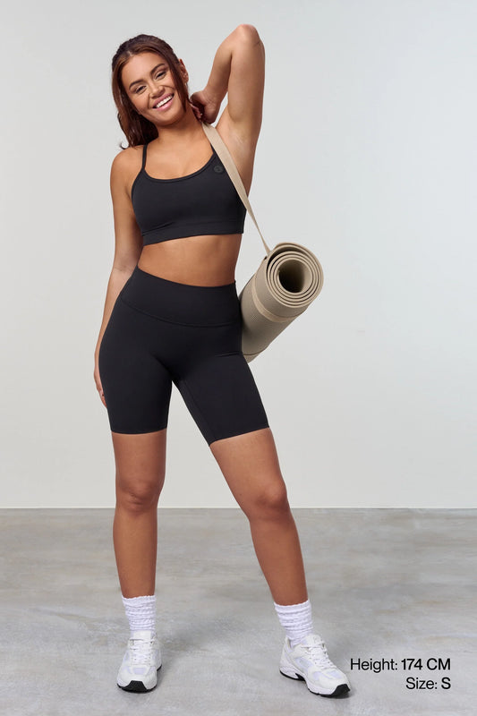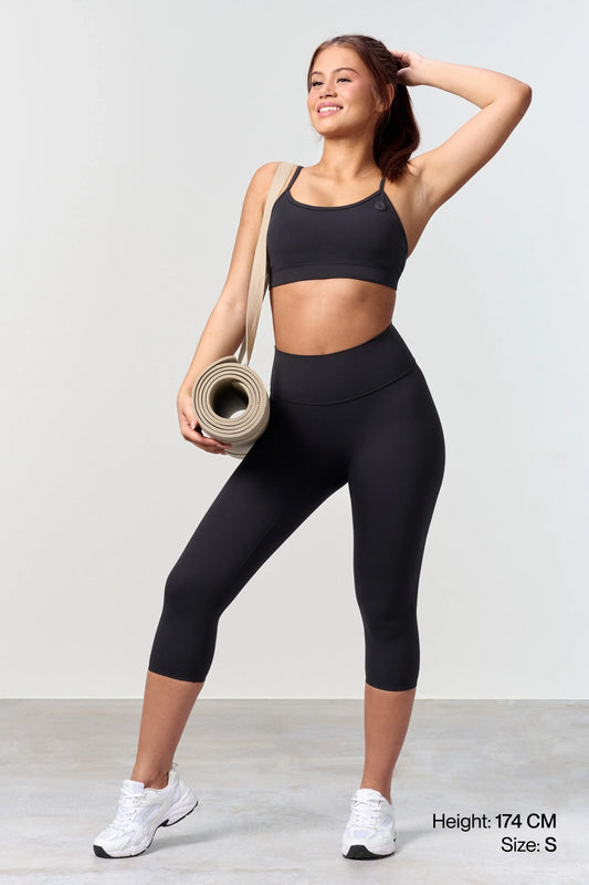 The construction of Softy fabric is unique. We’ve used fine Nylon 6.6 and Lycra Elastane. The material is tightly knitted (Interlock) for a matte look and uncompromising comfort. It makes the activewear suitable for training and ensures that tights and shorts are squat-proof. Neither tights, shorts, nor capri have a front seam, preventing camel toe.